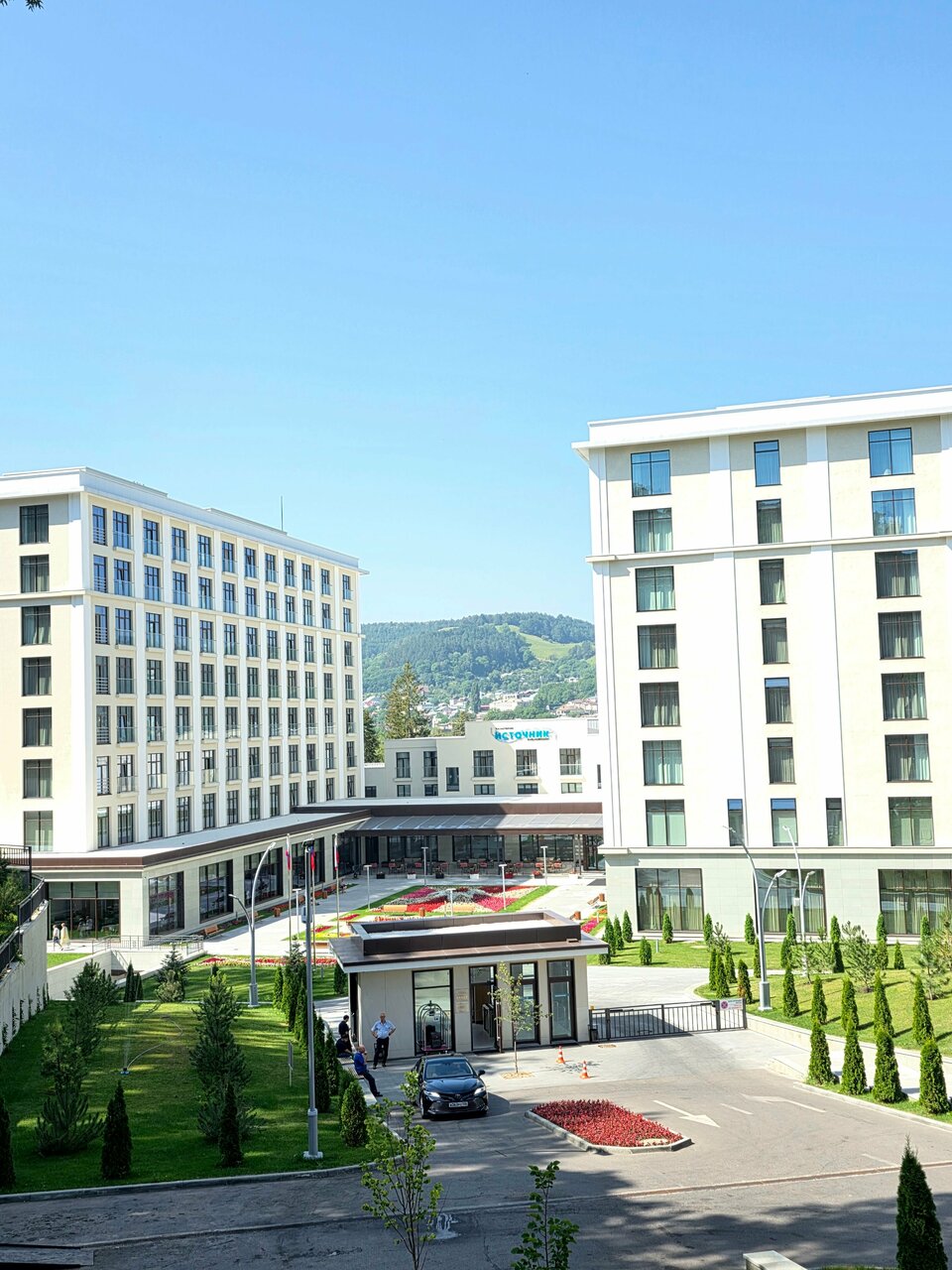 Постараюсь максимально объективно отразить свою оценку в отзыве и ничего не упустить. Сразу скажу, что сравнивал с Зарёй и Плазой. Тут, правда, надо оговориться, что в Плазе были крайний раз году в 2017, до ремонта. В Заре - в 2023 и 2024. Итак (система - 5-бальная): 1. Расположение - 5 с минусом (Заря-5, Плаза-3). С точки зрения выхода в парк, к колоннаде и проч. - удобно, особенно, по сравнению с Плазой, где с одной стороны шум от дороги (хотя сейчас там вроде пешеходную зону сделали),а с другой - долгий крутой подъем в парк по серпантину. Минус же в том, что от кафе, расположенных неподалеку, исходит сильное шашлычное амбре, особенно вечером. В этом отношении Заря - просто супер, особенно учитывая, что все номера (ну, кроме нижних этажей) имеют очень красивый вид на горы и очень большие балконы (точнее, лоджии). Но об этом ниже. 2. Персонал - 5. (Заря-5, Плаза-уже не помню, но негатива точно не осталось). Коллектив очень молодой, но при этом очень тактичный и собраный. Средний возраст сотрудников на всех участках - лет 25. Видно, что работа при приеме с ними проводилась тщательная. Все приветливые, но не до фанатизма как в Заре, где за не сказанное отдыхающему Добрый день, мне кажется, лишают не только премии, но и жизни. 3. Номера - 5 с минусом. ((Заря-4 (ушатанные), Плаза до ремонта-3 (маленькие, по крайней мере, стандарты), но, повторю, это только по сравнению с Источником, ибо в других санаториях даже по фото и отзывам - лютый совок). Очень просторные, в отделке использованы дорогие материалы (это же касается мебели и сантехники). Большой, нет, просто огромнейший недостаток - отсутствие нормальных балконов (французские, на которых нельзя посидеть - бред), причем в номерах именно высоких категорий! В Заре, например, - во всех номерах огромные лоджии, куда мы даже выносили диван и кайфовали от шикарных видов и чудесной птичьей какофонии. 4. Инфраструктура в целом и с точки зрения клиентоориентированности- 5 (Заря-3, Плаза-4) - [ ] Два бассейна средних размеров (на вид 15*7), еще один детский и один за отдельную плату при желании, если хочешь отдохнуть отдельно от других отдыхающих. В женской и мужской раздевалках свои Хаммамы и сауны👍! В Плазе тоже самое вроде было, но тут круче! В Заре хаммама нет (не было, по крайней мере), а сауна работает раз в год, с предварительной записью за 10 лет и только по назначению врача 🤯🤯🤯. Бассейн в Заре,правда, большой и чистый, но ни дай Бог ты придешь не вовремя- расстрел через повешение. - [ ] Аптека работает с 8 до 20 и без выходных! В отличие от Зари, где, кажется, часа 2 в день. - [ ] Есть тренажерный и гимнастический залы. Впрочем, как обычно, не востребованы. - [ ] Целый развлекательный этаж (бильярды, теннисные столы, настольный футбол и аэрохоккей, даже комната с игровыми приставками) Отделочные материалы, как и в номерах - высочайшего уровня. 5. Медицинский блок - 5 (Всё оборудование новое. Процедуры, естественно, по времени, но если вы опоздали или надо, например, уехать - вам всегда пойдут навстречу и перенесут, причем, для этого не обязательно надо идти к врачу, девчонки сами все решат на месте. С отзывами, в которых пишут об очередях на процедуры, категорически не соглашусь. За неделю пребывания не ждали ни минуты. Немного запутанное расположение кабинетов мед блока, но к концу отдыха, надеюсь, все-таки разберемся)). Ну и конечно же в базовое лечение входит всякий хлам тип
